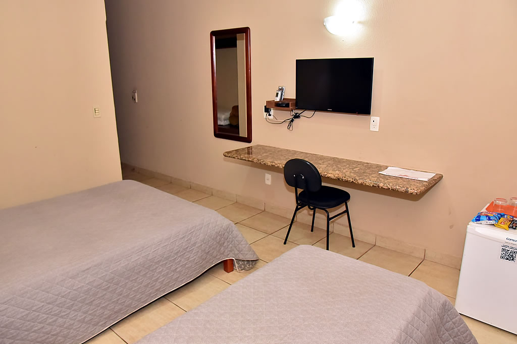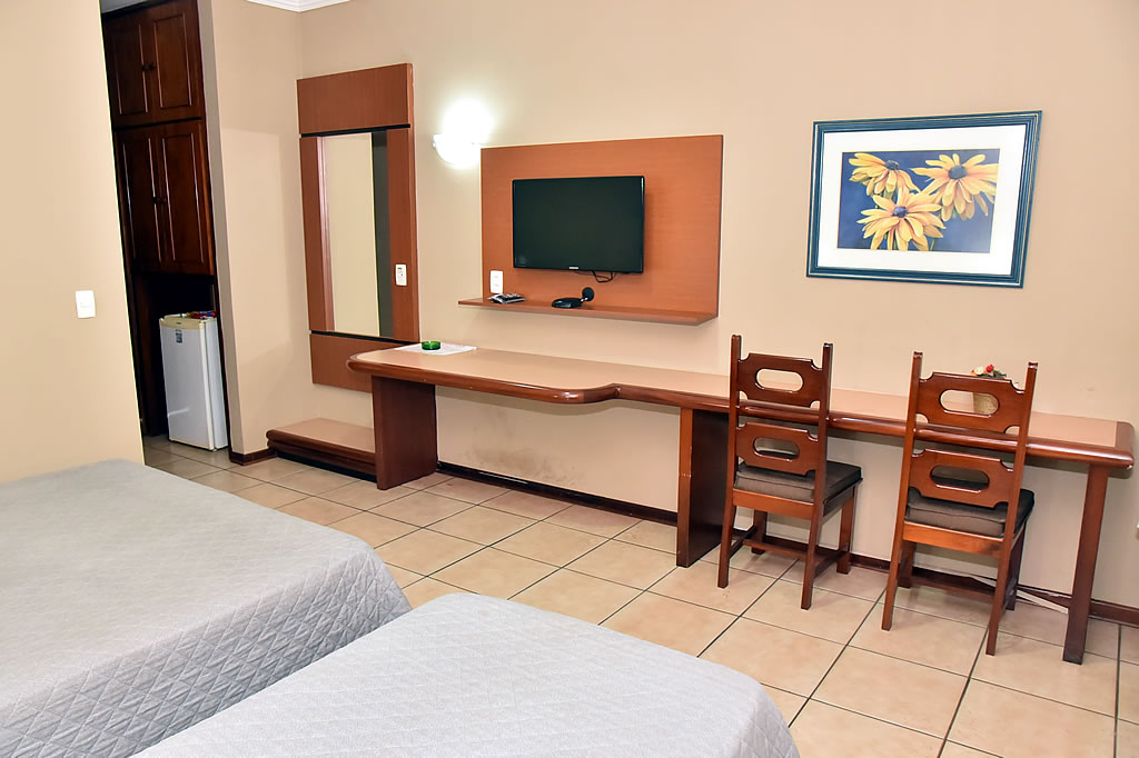 Acomodações Apartamento Luxo – TV LED 32″ com vários canais a disposição do cliente– Telefone direto– Frigobar – Ar condicionado– Internet banda larga– Garagem privativa Apartamento Superior 1 – TV LED 32″ com vários canais a disposição do cliente– Telefone direto– Frigobar – Ar condicionado– Internet banda larga– Garagem privativa Apartamento Superior 2 – TV LED 32″ com vários canais a disposição do cliente– Telefone direto– Frigobar – Ar condicionado– Internet banda larga– Garagem
